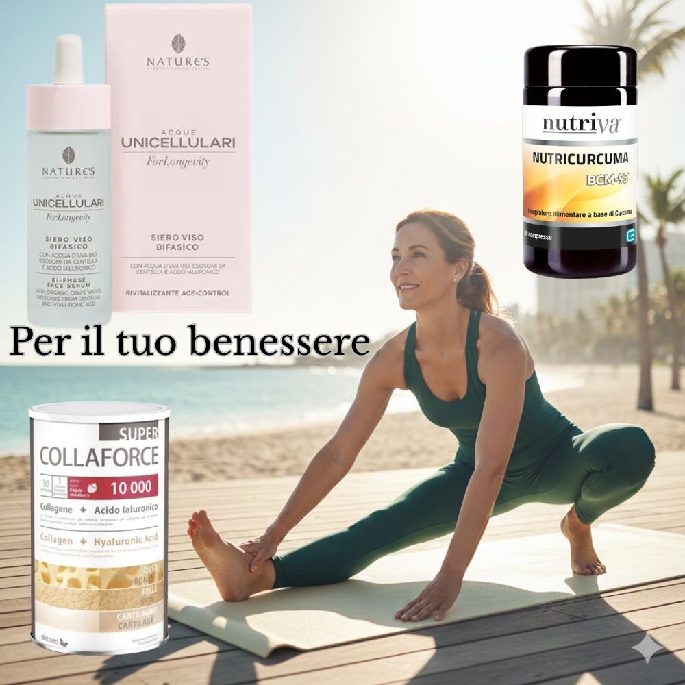 - Perché funziona: Mentre il Collaforce 10.000 fornisce i mattoni fondamentali (10g di collagene) per ricostruire le cartilagini e i tessuti connettivi, la Nutricurcuma agisce come un potente “spegni-incendio” naturale.
