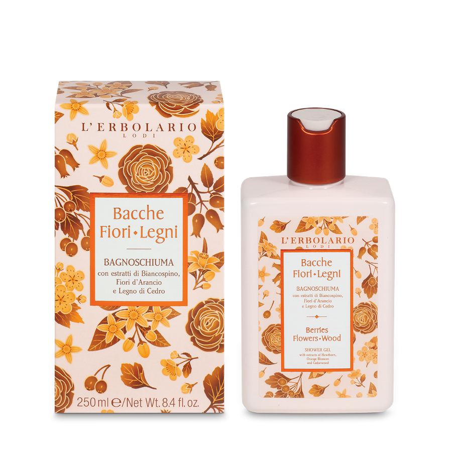 Rilassati nella frescura di un bosco con il Bagnoschiuma Bacche Fiori e Legni. Tonificante e idratante, avvolge la pelle con note di biancospino e cedro. Per una doccia sensoriale unica.