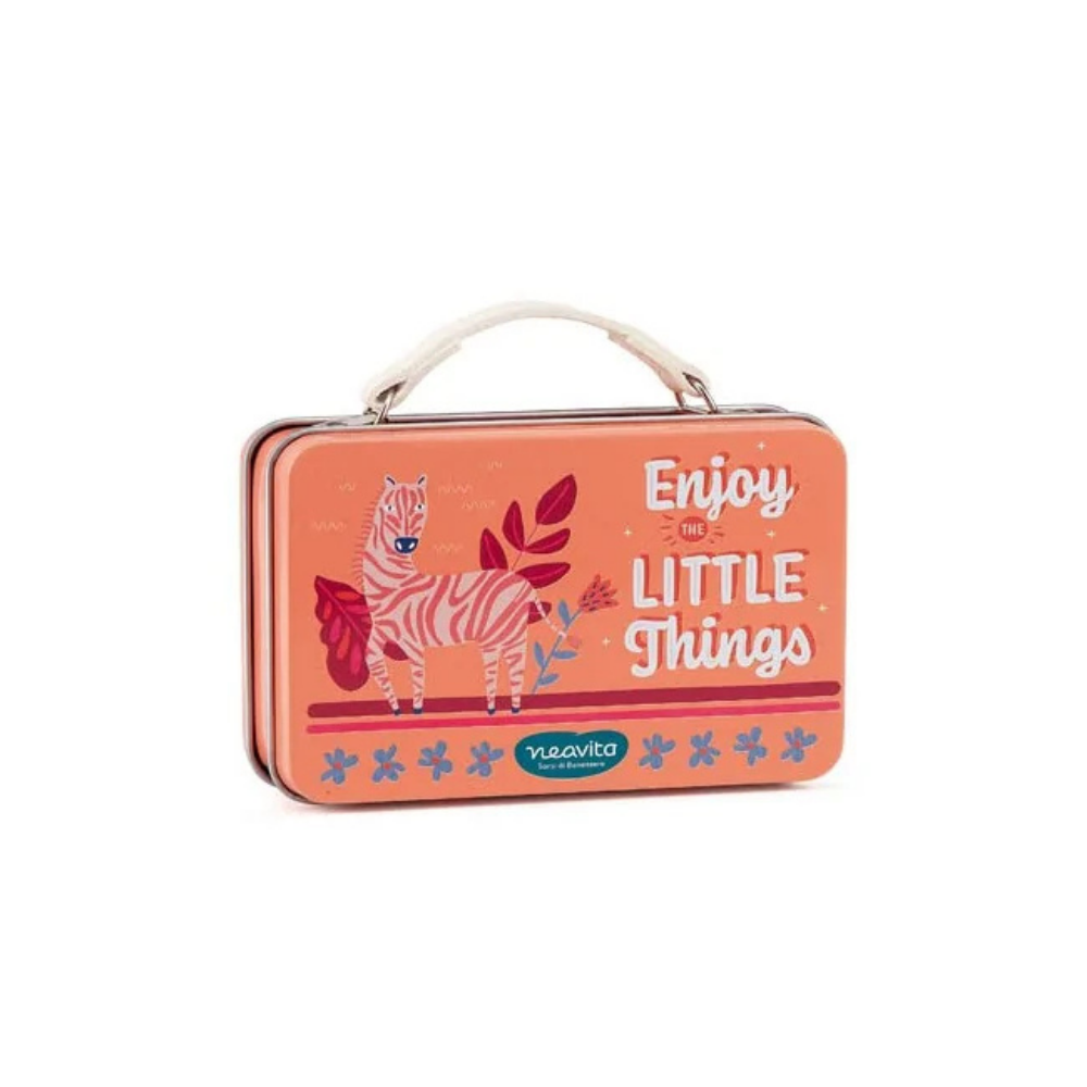 La Valigetta Arancione Zebra di Neavita non è solo un regalo perfetto per gli amanti delle tisane, ma anche un oggetto di design che può essere riutilizzato in mille modi creativi. Usala per conservare le tue miscele preferite o per organizzare piccoli accessori quotidiani. Il motto “Enjoy the Little Things” che la decora è un promemoria del potere dei piccoli gesti e dell’importanza di prendersi del tempo per sé stessi.